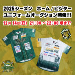 【12月14日(日)21:0~22:00頃まで】2025シーズンユニフォームオークション開催!